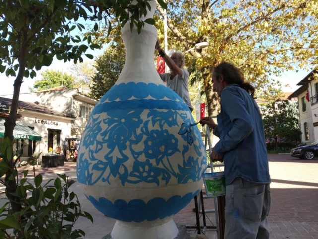 UNESCO Dünya Mirası listesindeki Bursa’nın İznik ilçesinde Kaymakamlık binası girişinde sergilenmek üzere gaz betondan 2.20 metre boyunda 120 santimetre çapında dev İznik çini vazosu yapılıyor. İznikli yerel sanatçılar Yalçın Öztürk ve Kudret Gürol tarafından Nilüfer Hatun Çini Çarşısı’nın bulunduğu alanda yapımı devam eden vazonun üzerine ‘Baba Nakkaş’ deseni işleniyor.