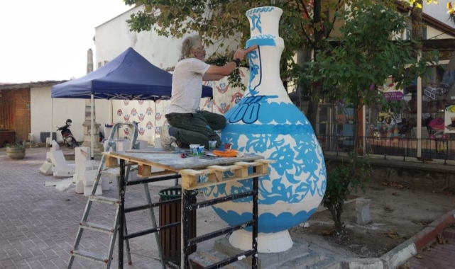 İznikli sanatçı Yalçın Öztürk, Nilüfer Hatun Çini Çarşısı ile Kaymakamlık binasının girişlerinin aynı yerde olduğunu belirterek, “Burayı güzelleştirmek için dekor amaçlı vazolar yapıyoruz. İznik tarihin yansıtılacağı bu eserlerle bu bölgeye renk katmayı düşünüyoruz. Vazonun üzerine Baba Nakkaş deseni işleniyor. Bunun özelliği de iki ve üç boyutlu olmasıdır. Bu vazo ile 10 gündür uğraşıyoruz. Bir iki günlük daha işi kaldı. Bundan sonra da benzer işlerin yapımına devam edeceğiz” dedi.
