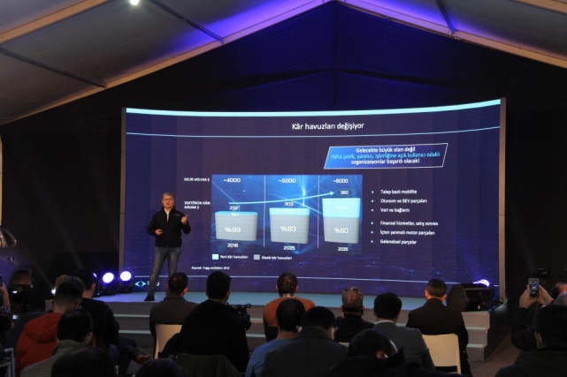 TOGG’un Gemlik’teki üretim tesisi hakkında da konuşan Karakaş, “Biz burada sadece bir üretim merkezi kurmuyoruz. Aynı çatı altında stil tasarımından, Ar-Ge’sinden, prototiplerinden, stratejik yönetim merkezinden ve denetim parkımızdan başlayarak bütünsel bir yaklaşımımız var. Bunun altını çizmek istiyoruz. Bunu yaparken de buranın ne kadar temiz, güzel bir bölge olduğunu biliyoruz. Öyle de kalmasını istiyoruz. Bunu büyük bir gururla söylüyorum, Avrupa’nın en temiz tesisini, Gemlik’te inşa ediyoruz. Uçucu organik bileşenler Avrupa’nın 7’de 1’i, Çin’i çok fazla şeffaf olmadığı için bilmiyoruz ama başka bir yerde daha temizi yok. Zaten sıfır emisyonlu bir araç üretiyoruz. Tedarikçilerimiz ve iş ortaklarımızla düşük karbon emisyonunu önemsiyoruz” dedi.