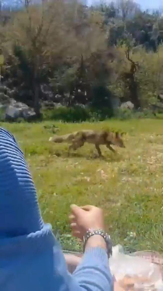 Ormanlık alanda besin bulmakta zorlandığı düşünülen tilkinin, yiyecek arayışıyla piknikçilerin bulunduğu bölgeye indiği, vatandaşların da elleriyle beslediği anlar cep telefonu ile kayda alındı. İnsanlardan çekinmeden yaklaşan tilki, doğal yaşamda yaşanan besin sıkıntısının yaban hayvanlarını yerleşim alanlarına daha fazla yaklaştırdığını gözler önüne serdi.