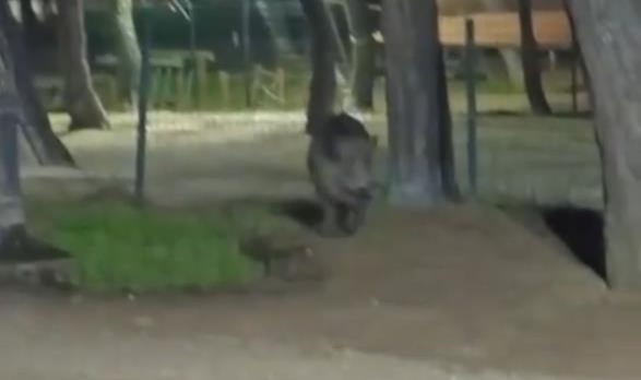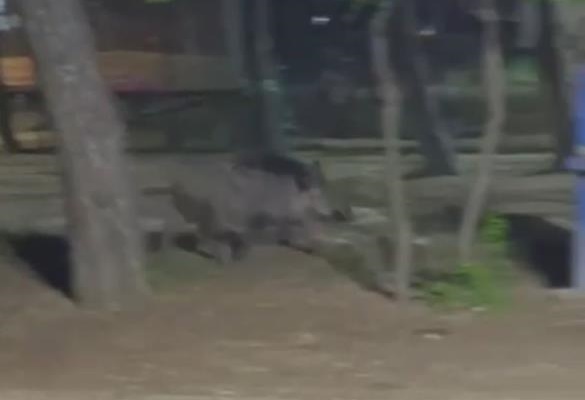 Bir süre gezinen domuz, piknik yapan vatandaşlardan kalan artıkları yiyerek karnını doyurdu. O anlar amatör kameraya yansıdı.