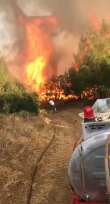 Arada kalan Kerem isimli genç bir çiftçinin tek başına Müdahale etmesi taktir toplarken traktördeki arkadaşının Kerem yanacağız gel diye ona bağırması dikkat çekti.Karayolu üzerinde yolu saran alevler sebebiyle yangına müdahale etmek için araçlarıyla gelen vatandaşlar araçlarını alevlerden zor kaçırdı.