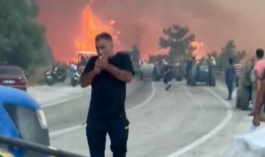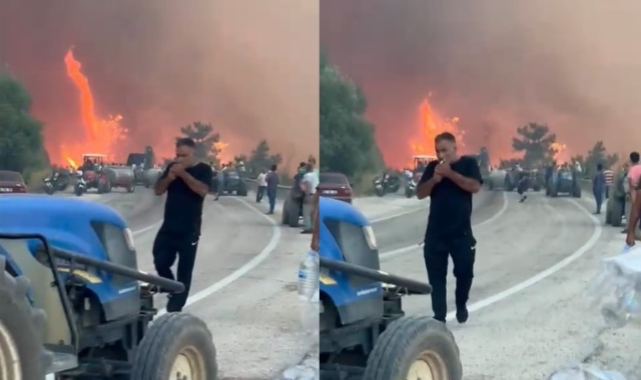 Tüm bunlar yaşanırken karayolunu saran alevlere rağmen sigarasını yakan bir kişi ise bu kadarına da pes dedirtti.