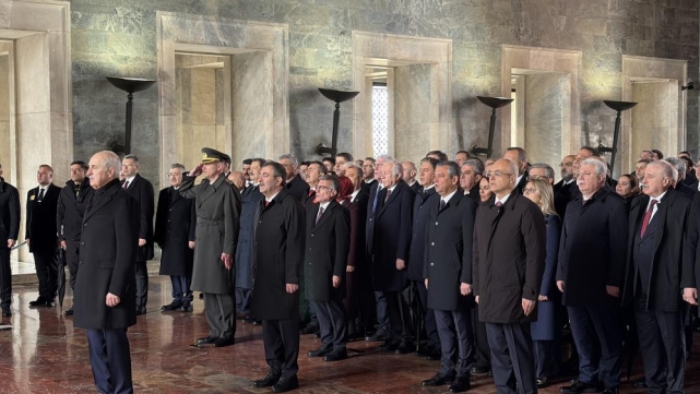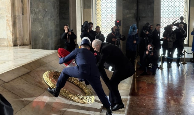Heyet, Aslanlı Yol'dan yürüyerek Atatürk'ün mozolesine geldi. TBMM Başkanı Kurtulmuş'un mozoleye çelenk bırakmasının ardından saygı duruşunda bulunuldu ve İstiklal Marşı okundu. Kurtulmuş, daha sonra Misak-ı Milli Kulesi'nde Anıtkabir Özel Defteri'ni imzalayarak şunları yazdı: