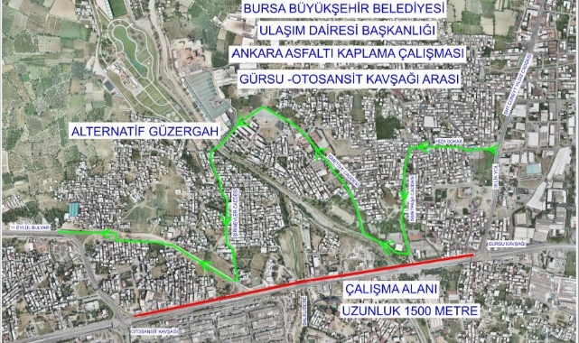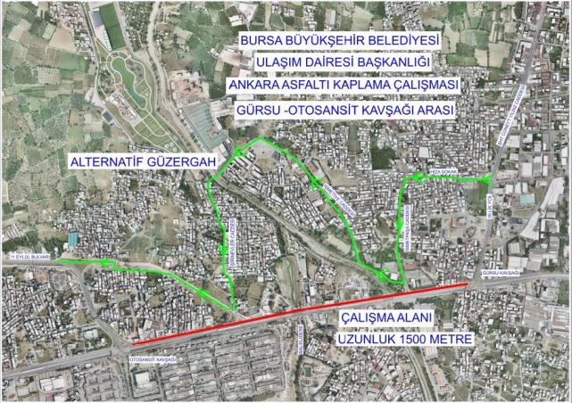 Bursa Büyükşehir Belediyesi tarafından yapılacak asfalt yenileme çalışmaları çerçevede Bursa-Ankara yolu İzmir gidiş istikameti Gürsu Kavşağı ile Otosansit Kavşağı arası 18 Ağustos Cuma (Bugün) günü saat 23.00’dan 19 Ağustos Cumartesi (Yarın) günü saat 06.00’ya ve 19 Ağustos Cumartesi (Yarın) günü saat 23.30’dan 20 Ağustos Pazar günü saat 11.00’a kadar trafiğe kapatılacak. Çalışma süresince sürücülerin alternatif güzergahları kullanmaları gerekecek.