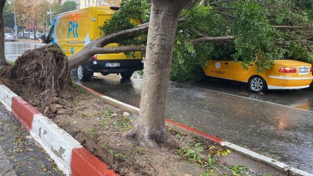 Devrilen ağaç lüks otomobili hurdaya çevirdi Fırtına, kent merkezinde birçok noktada ağaçların dallarını kırdı, gövdesinden kopardı. Ağaçların altında kalan bazı araçlar hasar görürken yaralanan olmadı. Muratpaşa Belediyesi ekipleri de şiddetli yağış ve fırtına dolayasıyla adeta teyakkuz durumuna geçti. Park ve Bahçeler ve Fen İşleri Müdürlüklerine bağlı ekipler, günün ilk saatleriyle birlikte su basması, ağaç kopması gibi 13 ayrı olaya müdahale etti. Ekipler, son olarak Meydankavağı Mahallesinde park halinde bulunan bir aracın üzerine devrilen ağacı kaldırdı.