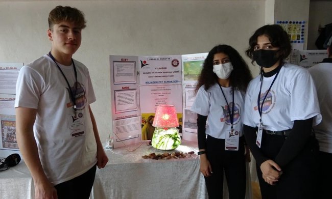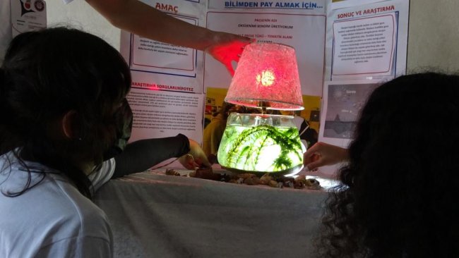Yaptıkları projeyle ilgili bilgi veren öğrenciler, "Bize oksijenin ormandan, ağaçlardan geldiğini söylüyorlar, fakat bu oksijenin yüzde 20'sine tekabül ediyor. Oksijenin yüzde 80'lik kısmını ise algler, yani su bitkileri karşılıyor. Bu bitkilerin sürekli oksijen üretmesi için de mor ve kırmızı ışığa ihtiyaç var. Biz kavanoza ektiğimiz bu bitkinin kırmızı ve mor ışık kullanarak sürekli oksijen üretmesini sağladık. Evlerimiz kış aylarında oksijensiz kalıyor. Bu geliştirdiğimiz proje sayesinde evler oksijensiz kalmayacak. Bu bitkinin adı elodea. Bu projenin bilhassa nefes darlığı çekenler için gerekli bir proje olduğunu düşünüyoruz" dedi.