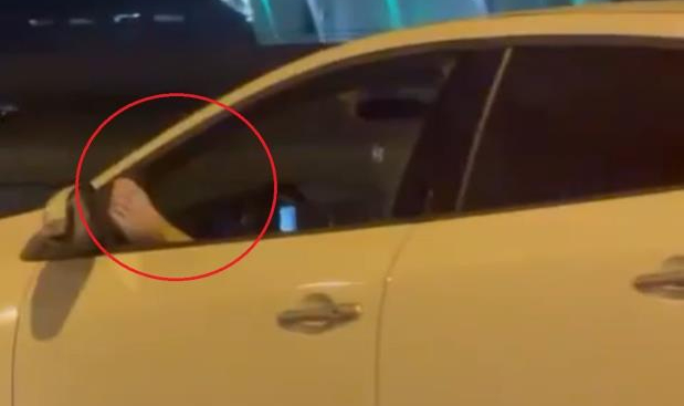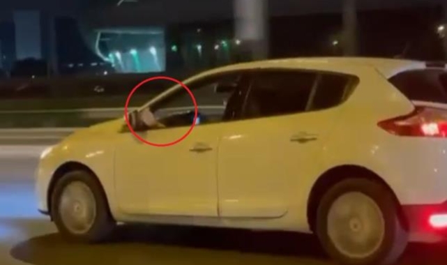 Bursa'nın Osmangazi ilçesi İzmir Yolu Caddesi seyir halindeki otomobil sürücüsü sol ayağını camdan dışarı çıkarıp yolculuk yaptı. Direksiyon başındaki sürücü ne kendini ne de başkalarına düşünürken, adeta kazaya davetiye çıkardı. O anları trafikteki başka sürücüler tarafından cep telefonu kameraya alınca durumu fark eden kişi hemen kendini topladı.