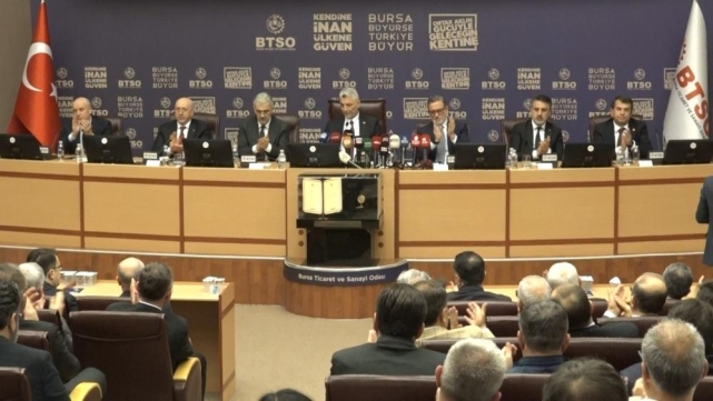 İhracatçılara yönelik desteklerin sürdüğünü ifade eden Bolat, "Amacımız üretimi, istihdamı ve ihracatı daha da güçlendirmektir. Bursa'nın ihracatı geçen yıl yaklaşık yüzde 10 artarak 20 milyar dolara ulaştı. Bu yıl da artış eğiliminin devam ettiğini görüyoruz" şeklinde konuştu.Bursa Ticaret ve Sanayi Odası Başkanı İbrahim Burkay ise, "Türkiye'nin sahadaki caydırıcı askeri varlığı ve siyasi iradesiyle, bu zorlu coğrafyada oyun kurucu bir güç olduğunu tüm dünyaya ilan etmiştir. Cumhurbaşkanı Recep Tayyip Erdoğan'ın liderliğinde yükselen bu kararlı duruş, Türkiye'yi bölgesel bir aktör olmaktan çıkarıp küresel sistemin merkezine yerleştirmiştir. Bu stratejik çerçevede, Ticaret Bakanlığımızın liderliğinizde yürüttüğü çalışmalar; sahadaki siyasi ve askeri kazanımlarımızı kalıcı bir ekonomik yapıya kavuşturmak adına çok önemli bir temel teşkil etmektedir. Özellikle Irak ile hayata geçirilen Kalkınma Yolu Projesi, Ukrayna'nın yeniden inşa sürecinde Türk müteahhitlik sektörüne açılan kapılar ve komşularımızla artan ticaret hacmi, bu vizyonun sahadaki en somut yansımalarıdır. Zorlu küresel tabloya rağmen sergilediğimiz direnç ve performans hepimiz için büyük bir övünç kaynağıdır. Geçtiğimiz yıl ekonomimiz yüzde 3,6 oranında büyüme yakalarken; mal ve hizmet ihracatında ise 396 milyar dolarlık rekor performans yakaladık. Bursa iş dünyası olarak bizler de bu tarihi yükselişin en güçlü parçalarından biriyiz" dedi.