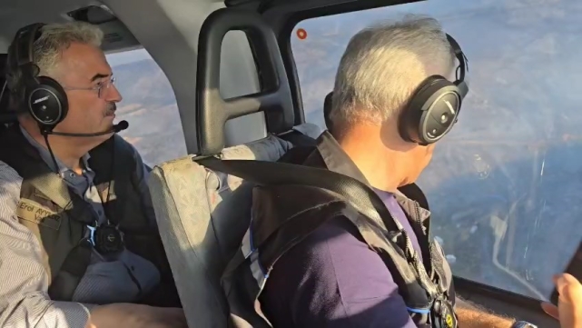 Daha sonra helikopterle bölgeye inen Bakan Uraloğlu, personelden bilgi alarak yanan yerleri yakından gözlemledi.