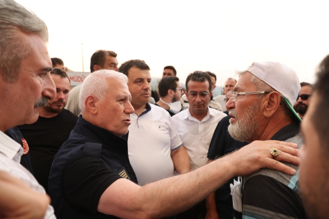 “Daha da fazlasını da talep ediyoruz”Harmancık ilçesindeki durumu gece gündüz demeden 24 saat boyunca takip ettiklerini söyleyen Başkan Bozbey, yangının devam etmesinin herkesi üzdüğünü dile getirdi. Bursa’nın geleceğinin karardığını görmenin son derece üzüntü verici olduğunu ifade eden Başkan Bozbey, “Alanda yeterli destek var. Ancak yangının nereye, ne zaman, nasıl döneceğini kestiremiyoruz. Bu yüzden ekiplerin yoğun çalışmalarına rağmen yangın söndürülemiyor. Valiliğimizin önderliğinde yapılan çalışmalar sayesinde belli bir noktaya gelineceğine inanıyoruz. Rüzgar şiddetinin yavaşlamasıyla durumun stabil hale döneceğine, ardından soğutma çalışmalarıyla yangının söndürüleceğine inanıyorum. Özellikle ekiplerin ulaşamadığı bölgelere uçak ve helikopterlerin gün içerisinde sürekli destek vermesi önemliydi. Daha da fazlasını da talep ediyoruz. Bu sayede daha fazla orman yanmaktan kurtulmuş olacaktır” diye konuştu.