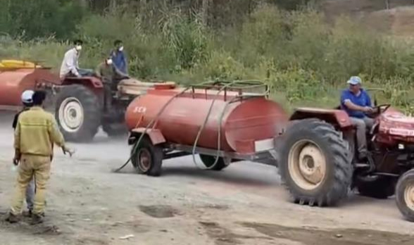 Bursa'nın Harmancık ilçesinde süren orman yangınına traktörünün lastiği patlamasına rağmen tankerle su taşıyan çiftçi Ramazan Doğru, görüntülerin sosyal medyaya düşmesiyle herkesin gönlünü kazandı. Yaklaşık 40 kilometre uzaktaki köyünden çıkıp lastiği patlamasına rağmen jant üzerinde traktör süren Ramazan Doğru, çevredekilerin uyarısına rağmen yangının söndürülmesine katkı sunmak için son ana kadar mücadele etti. Jant üzerinde 2 ton suyu taşıdıktan sonra Keles’teki Basak köyüne geri dönen Ramazan Doğru’nun patlayan lastiği, sabah saatlerinde Büyükşehir Belediyesi ekipleri tarafından yenilendi.
