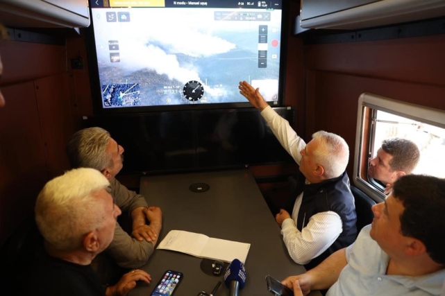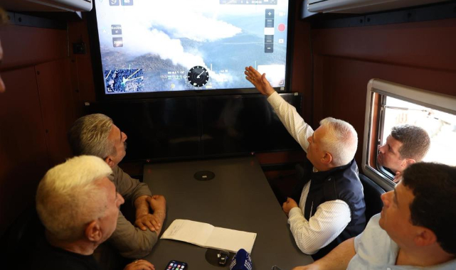 Orhaneli Belediye Başkanı Ali Osman Tayır ve Keles Belediye Başkanı Ali Doğru ile bir araya gelen Başkan Mustafa Bozbey, son durum hakkında fikir alışverişinde bulundu. Daha sonra AKOM aracına geçen Başkan Bozbey ve beraberindekiler, drone aracılığıyla alanı gözlemleyerek durum değerlendirmesi yaptı.