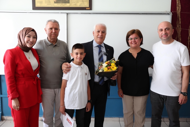 Başkan Mustafa Bozbey daha sonra İl Milli Eğitim Müdürlüğü tarafından Hacı Mehmet Zorlu Özel Eğitim Meslek Okulu’nda düzenlenen karne törenine katıldı. Törene, Başkan Mustafa Bozbey’in yanı sıra Bursa Valisi Erol Ayyıldız, İl Milli Eğitim Müdürü Dr. Ahmet Alireisoğlu, İl Emniyet Müdürü Sabit Akın Zaimoğlu, Yıldırım Belediye Başkanı Oktay Yılmaz ve öğretmenler katıldı. Öğrencilerle sohbet eden ve karnelerini veren Başkan Mustafa Bozbey, velilere de tavsiyelerde bulunarak notlar ne olursa olsun çocuklarının yanlarında olmalarını tavsiye etti.
