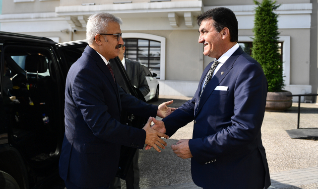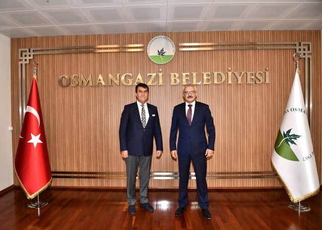 Osmangazi Belediye Başkanı Mustafa Dündar, belediye binası girişinde karşıladığı Bursa Cumhuriyet Başsavcısı Ramazan Solmaz’ı makamında ağırladı.