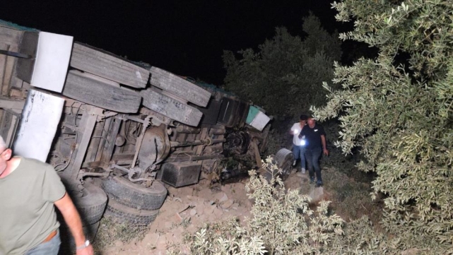 Bayırköy'den Orhangazi istikametine giden Enis Akkılıç (32) idaresindeki dolmalık ve sivri biber yüklü 45 AKE 766 plakalı kamyon, virajı alamayarak yol kenarındaki zeytinliğe uçtu. Yaklaşık 40 metre sürüklenen kamyon devrildi.