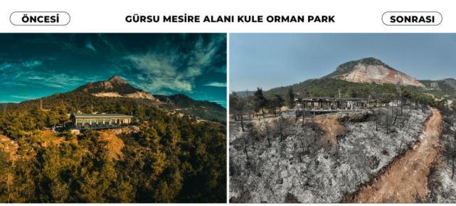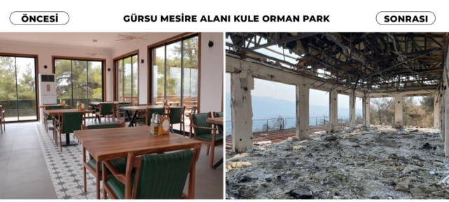 Katırlı Dağı'nın eteklerinin kapkara olduğu ve tüm güzel yeşil alanların küle döndüğü görüldü. Özellikle İğdir Mahallesi sınırlarında yer alan Gürsu Belediyesi'nin 80 dönümlük dev mesire alını da büyük zarar gördü.