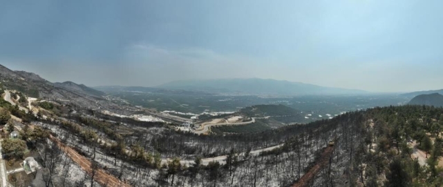 Dron ile görüntülenen esik yemyeşil ormanlık alının küle dönmüş son hali herkesi duygulandırdı.