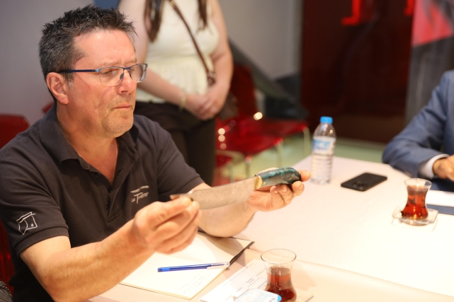 Konuşmaların ardından Başkan Mustafa Bozbey tarafından günün anısına Fatih Adliğ ve Stéphane Rodier’e Bursa Bıçağı hediye edildi.