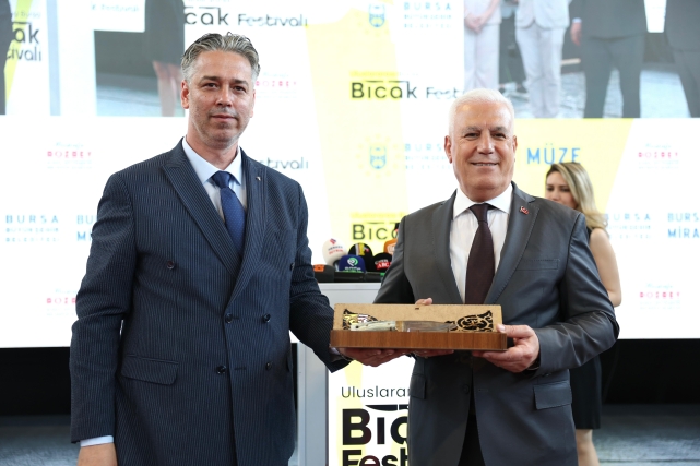 Bursa Büyükşehir Belediye Başkanı Mustafa Bozbey, Türkiye’de bıçakçılığın Bursa’dan geliştiğini ve Bursa'nın bu konuda çok fazla kültürel birikimi bulunduğunu anlattı. Bu özelliğini Bursa’ya yeniden kazandırmanın çabası içerisinde olduklarını söyleyen Başkan Bozbey; Bursa’nın usta ellerin maharetini, tecrübesini ve ince işçiliğini, bıçağın çeliğinde buluşturan bir kent olduğunu belirtti. Asırlar boyu kentin çarşılarında, atölyelerinde yankılanan çekiç seslerinin bugün festivalde yeniden hayat bulduğunu ifade eden Başkan Bozbey, “Bursa olarak bu yıl Uluslararası Dünya Bıçak Üretici Başkentleri Birliği’ne resmen üye olduğumuzu gururla paylaşmak isterim. Geçtiğimiz ekim ayında Arjantin’de yapılan toplantıya katılarak kentimizin bıçakçılık mirasını dünya şehirleriyle buluşturduk. Burada bir müjde daha vermek istiyorum. 2027 yılında, Uluslararası Dünya Bıçak Üretici Başkentleri Birliği Buluşması’na Bursamız ev sahipliği yapacak. Bu önemli buluşmayla birlikte Bursamızın köklü bıçak geleneğini sürdüren ustaları ile dünyanın dört bir yanından gelen bıçak ustaları aynı çatı altında buluşacak. Köklü kültürümüz olan bıçakçılığı tekrar Bursa’da canlandırma ve gelecek kuşaklara aktarma sorumluluğuna sahibiz” dedi.
