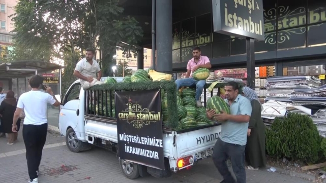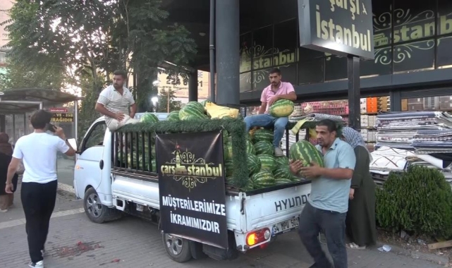 "20 dakikada tükendi"Mağaza sahibi Bekir Yetişen, "Yıllardır bizimle alışveriş yapan müşterilerimize teşekkür mahiyetinde böyle bir ikramda bulunalım dedik. Bursa'da kazanıyoruz, Bursa'da paylaşıyoruz. Bugün 4 kamyonet, toplamda 20 ton karpuzu müşterilerimize ikramda bulunduk. Müşterilerimizin ilgisi yüksek 20 dakika içerisinde 4 kamyon karpuz tükendi. Bizler de memnunuz, insanların hayır duasını aldık. Bu sıcak yaz gününde insanlarımız karpuzla serinlemiş olacak" şeklinde konuştu.