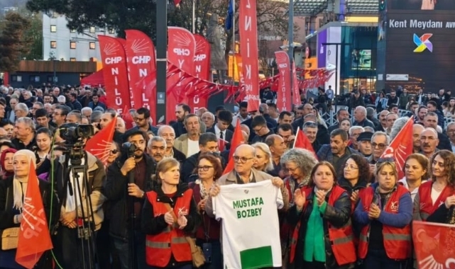 Bursa’da CHP Osmangazi İlçe Başkanlığı öncülüğünde düzenlenen mitingde, tutuklanan Büyükşehir Belediye Başkanı Mustafa Bozbey’e destek verildi. Yoğun katılımın olduğu programa, CHP Bursa Milletvekili Orhan Sarıbal, CHP Bursa İl Başkanı Nihat Yeşiltaş, Osmangazi Belediye Başkanı Erkan Aydın, Nilüfer Belediye Başkanı Şadi Özdemir, Mudanya Belediye Başkanı Deniz Dalgıç, Gemlik Belediye Başkanı Şükrü Deviren CHP Osmangazi İlçe Başkanı Raşit ve çok sayıda partili katıldı.