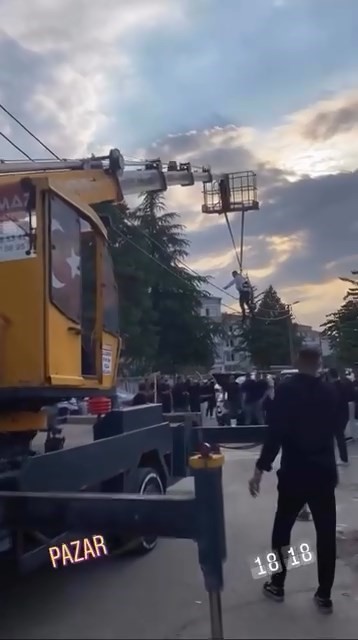Bursa'nın Yenişehir ilçesinde ilginç gelenekler devam ediyor. Düğün evine girmeden damada yapılan türlü türlü işkencelere, bir yenisi daha eklendi. Damadın arkadaşları kiraladıkları vinç ile damadı iple sallandırdı.