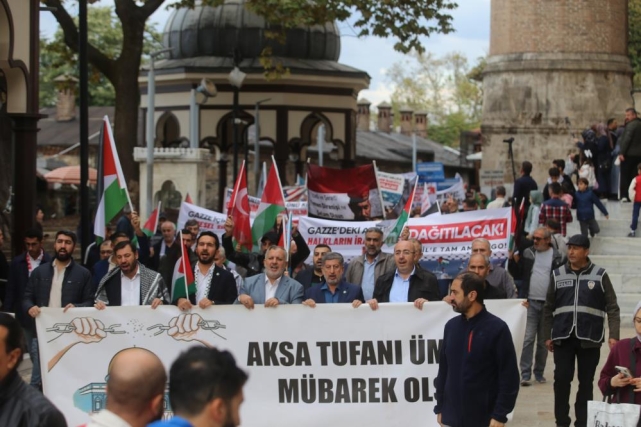 Ulu Camii önünden başlayan yürüyüş Şehreküstü Meydanı'nda sona erdi. Yürüyüş boyunca vatandaşlar, "Küresel Sümud Filosu onurumuzdur" yazılı pankartlar taşıyarak "Çok yaşa Filistin" sloganları attı.