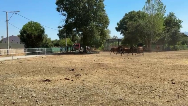 Ekiplerin müdahalesiyle yangın kontrol altına alınırken, içeride bulunan 1 at ile 2 keçi telef oldu. Diğer hayvanlar ise son anda kurtarıldı. Yangında büyük maddi zarar meydana gelirken, o anlar kameraya yansıdı.