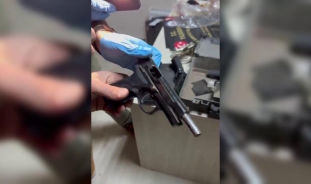 Yıldırım SÖS ekiplerinin titiz takibi sonucunda yapılan baskında 5 adet ruhsatsız tabanca, 14 adet kurusıkı tabanca, 27 adet şarjör, 63 adet çeşitli çaplarda fişek, silah yapımında kullanılan 14 parça araç-gereç ve 19 adet farklı türde silah parçası ele geçirildi.