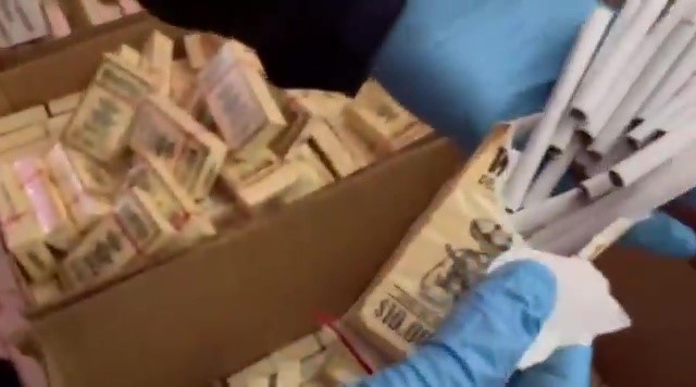 Yapılan aramalarda 1 milyon 186 bin 600 adet bandrolsüz makaron, 920 kilogram açık sarmalık kıyılmış tütün, 200 bin 800 adet sigara filtresi, 92 bin 620 adet makarona basılmış sigara, 19 bin 800 adet şeffaf naylon sigara poşeti, 18 bin 750 adet boş sigara kutusu, 8 bin 780 paket bandrolsüz sigara, 2 bin 700 paket bandrolsüz sigara kağıdı ile 20 kilogram bandrolsüz nargile tütünü ele geçirildi.