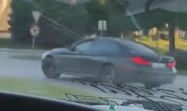 Görüntülerde, sürücünün aracıyla savrularak ilerlediği ve çevredeki diğer araçları hiçe saydığı görüldü.