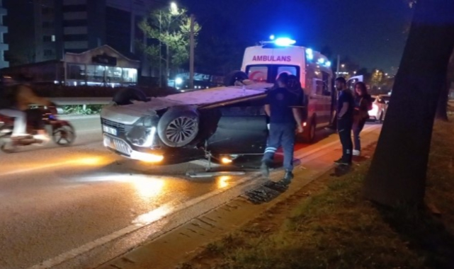 Şiddetli çarpışmanın etkisiyle 16 TBE 53 plakalı araç kontrolden çıkarak takla attı.
