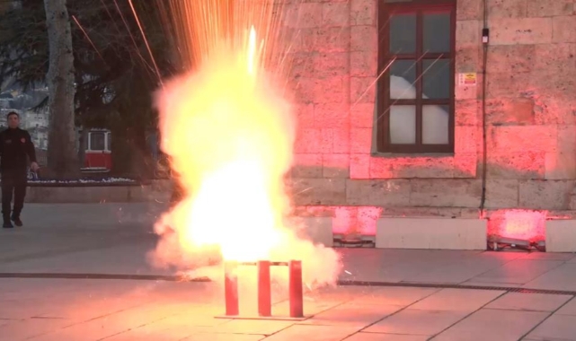 Bursa Büyükşehir Belediyesi İtfaiye Daire Başkanlığı ekipleri, iftar ve sahur vakitlerinde Tophane'de ses bombasını kontrollü şekilde patlatarak vatandaşlara zamanı duyuruyor.