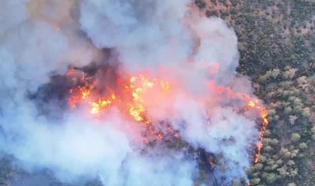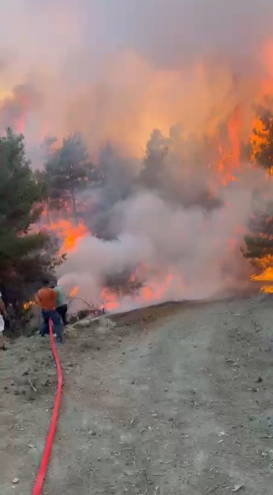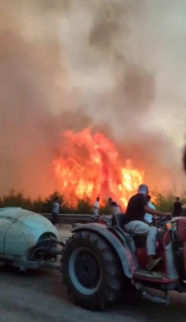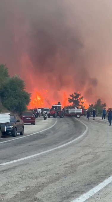 Yangına 2 yangın söndürme helikopteri ile havadan, çok sayıda arazöz ve itfaiye aracı ile karadan müdahale devam ederken, çok sayıda çiftçi de traktörleri ile söndürme çalışmalarına destek veriyor.