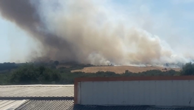 Yangın, ekiplerin müdahalesiyle yayılmadan kontrol altına alınırken, soğutma çalışmaları sürüyor.