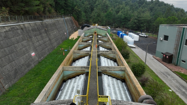 Riskler oluşmadan önleniyorTesisin arıtma sürecinde su, önce kaba ve ince ızgaralardan geçirilerek fiziksel kirliliklerden arındırılıyor. Ardından kimyasal çöktürme, filtrasyon ve dezenfeksiyon aşamalarıyla suyun içme suyu standartlarına ulaşması sağlanıyor. Bu süreçte kullanılan otomasyon sistemleri sayesinde tüm işlemler anlık olarak izleniyor. Olası riskler daha oluşmadan önleniyor.