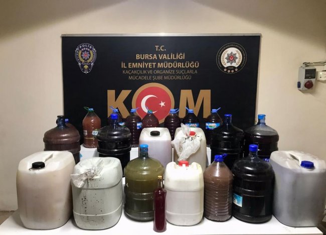 Türkiye'nin çeşitli illerinde sahte içkiden hayatını kaybedenler toprağa verilirken, yılbaşı öncesi ölümlerin önüne geçmek amacıyla denetimleri artıran Bursa İl Emniyet Müdürlüğü Kaçakçılık ve Organize Suçlarla Mücadele Şube Müdürlüğü ekiplerinin Bursa’da düzenlediği operasyonla piyasaya sürülmek üzere 803 şişelenmiş ve sahte bandrol basılmış, 400 litre ise şişelenmeye hazır sahte içki ele geçirdi.