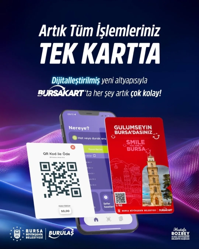 Bursa’da BURULAŞ aracılığıyla raylı sistem ve otobüslerle şehir içi, BUDO VE BBBUS ile de şehirler arası toplu taşıma hizmeti veren Büyükşehir Belediyesi, ulaşım hizmetlerini daha güvenli ve hızlı hale getirmek için BursaKart sisteminde yenileme sürecini başlattı.