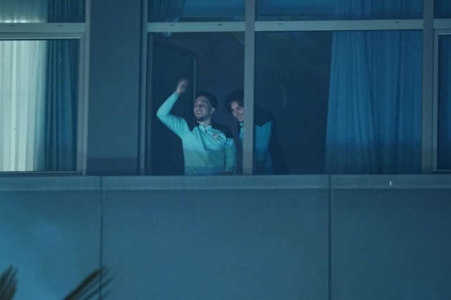 Tesise çıkan kulüp yöneticileri, teknik heyet ve futbolcular, taraftarı el sallayarak selamladı.
