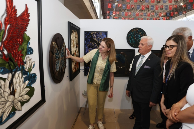 ''Bu seferberliğin en güçlü ayağını kadınlar oluşturmaktadır’’Sergilenen ürünlerin her birinin ayrı bir hikaye, ayrı bir anı oluşturduğuna değinen Başkan Bozbey, ‘’Filografiden ebruya, resimden çini ve seramiğe, cam süslemeden giyim teknolojilerine, iğne oyasından makromeye kadar uzanan bu geniş yelpaze, sadece estetik bir üretim değil, aynı zamanda bir yetenek seferberliğidir. Bu seferberliğin en güçlü ayağını da kadınlar oluşturmaktadır. Kadın emeğini görünür kılan, onları üretime, istihdama ve sosyal yaşama daha fazla dahil eden bir adımdır. Bu bizim için ayrı bir önem taşımaktadır. BUSMEK, tam bu anlayışla özellikle kadınların ekonomik bağımsızlıklarının kazanmaları konusunda duyarlılıklarını ortaya koymakta ve üretkenliklerini değerlendirmeleri için önemli bir kapı aralamaktadır. Sizlerin önerileriyle bu kurslar hem yazın devam edecek hem de çeşitliliği artacak’’ ifadelerini kullandı.Sergide yer alan eserleri ortaya koyan kursiyerlerin her biriyle ayrı ayrı gurur duyduğunu belirten Başkan Mustafa Bozbey, ‘’Kursiyerlerimizin bu ölçüde bilgi birikimine sahip olması konusunda duyarlılık gösteren tüm öğretmenlerimize ve çalışma arkadaşlarıma da ayrıca teşekkür ediyorum. Öğrenmenin, gelişmenin ve üretmenin yaşı yoktur. Biz buna inanıyoruz. Bizi umutlandıran budur’’ dedi.