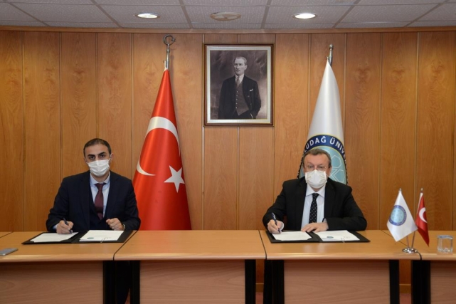Konuşmaların ardından Rektör Prof. Dr. Ahmet Saim Kılavuz ve BTSO Ali Osman Sönmez Sosyal Bilimler Lisesi Müdürü Bilal Yaşar Kartal tarafından protokole imzalar atıldı.