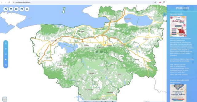 5000’DEN FAZLA ÖNEMLİ NOKTAUygulama, kent hakkında pek çok bilgiye hızlı ve kolay şekilde ulaşım imkanı sunuyor. Kullanıcı dostu ara yüzü ve güçlü harita altyapısı sayesinde ortofotolar, arazi kullanımı, zemin kalitesi haritası, gürültü haritası, nüfus yoğunluğu gibi birçok tematik harita katmanına erişim imkanı sağlanıyor. Kent genelindeki 5000’den fazla önemli nokta (POI) detaylı bir şekilde sunuluyor. Geliştirilen uygulamayla, şehirde yaşayan vatandaşların ve Bursa’yı ziyaret eden turistlerin günlük yaşamlarının kolaylaştırılması hedefleniyor.