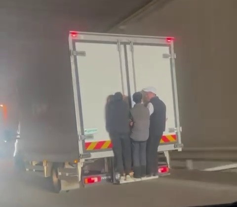 Çocukların tehlikeli yolculuğunu fark eden diğer sürücüler, kamyonet sürücüsüne korna ile ikaz etse de sonuç alamadı. Çocukların kendi canlarını hiçe sayarak seyahat ettiği anlar saniye saniye amatör kamera ile kaydedildi.