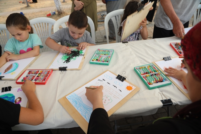 ‘Sevgili Dünya’ temalı resimler çizerek görsel mektuplar oluşturan çocuklar, eğitmenler eşliğinde hayal dünyalarını kağıtlara yansıttı. Gezici Sanat Atölyesi, önümüzdeki günlerde diğer yangın bölgelerini de ziyaret ederek çocukların gündemden uzaklaşıp gülümsemeleri için çeşitli etkinlikler düzenleyecek.