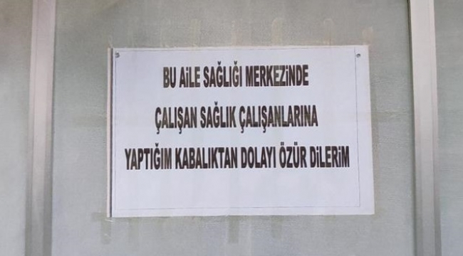 Şüpheli ve mağdur doktor, İnegöl adliyesindeki uzlaştırma bürosunda karşı karşıya geldi. Doktor, şüpheliden bir şartla şikayetçi olmayacağını söyledi. Doktorun, sağlık merkezi kapısına, "Bu aile sağlığı merkezinde çalışan sağlık çalışanlarına yaptığım kabalıktan dolayı özür dilerim" yazısını 1 hafta boyunca asmasını istedi. Şüpheli, şartı kabul etti. 1 metre uzunluğunda, 1 metre genişliğindeki beyaz kağıda ifadeleri yazan şüpheli, özür yazısını sağlık merkezinin kapısına astı. 1 hafta boyunca kapıda asılı olan yazıyı gören hastalar kısa süreli şaşkınlık yaşadılar. Yargılama sürecinin bir parçası olan uzlaştırma işlemleri sayesinde iki taraf da süreçten mutlu ayrıldı.