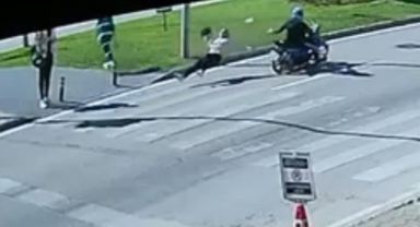 Motosikletiyle ön kaldırdı kayarak böyle düştü