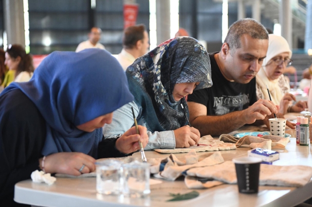 toplam 10 farklı sanat atölyesi kurularak 100 katılımcı, aynı anda üretmenin ve