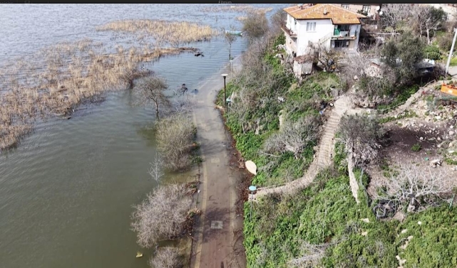 Yaren leyleğin köyünün göl kıyısındaki yürüyüş yolunu kaplayan göl suları hasar oluşturdu. Göl tarafı çöken yoldaki parke taşları yerinden söküldü, göl sularına karıştı.