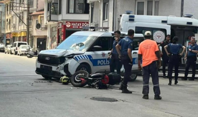 Bursa'nın Gemlik ilçesinde yaşanan kovalamacada direksiyon hâkimiyetini kaybeden motosikletli, polis aracına çarptı.